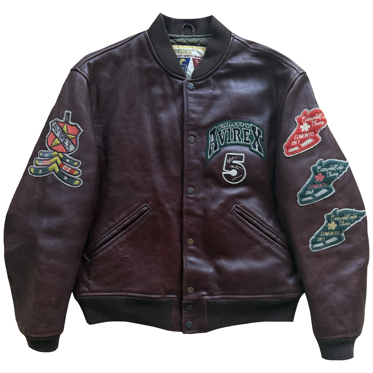Avirex 'North West Wild Bears' Leather Varsity Jacket - S