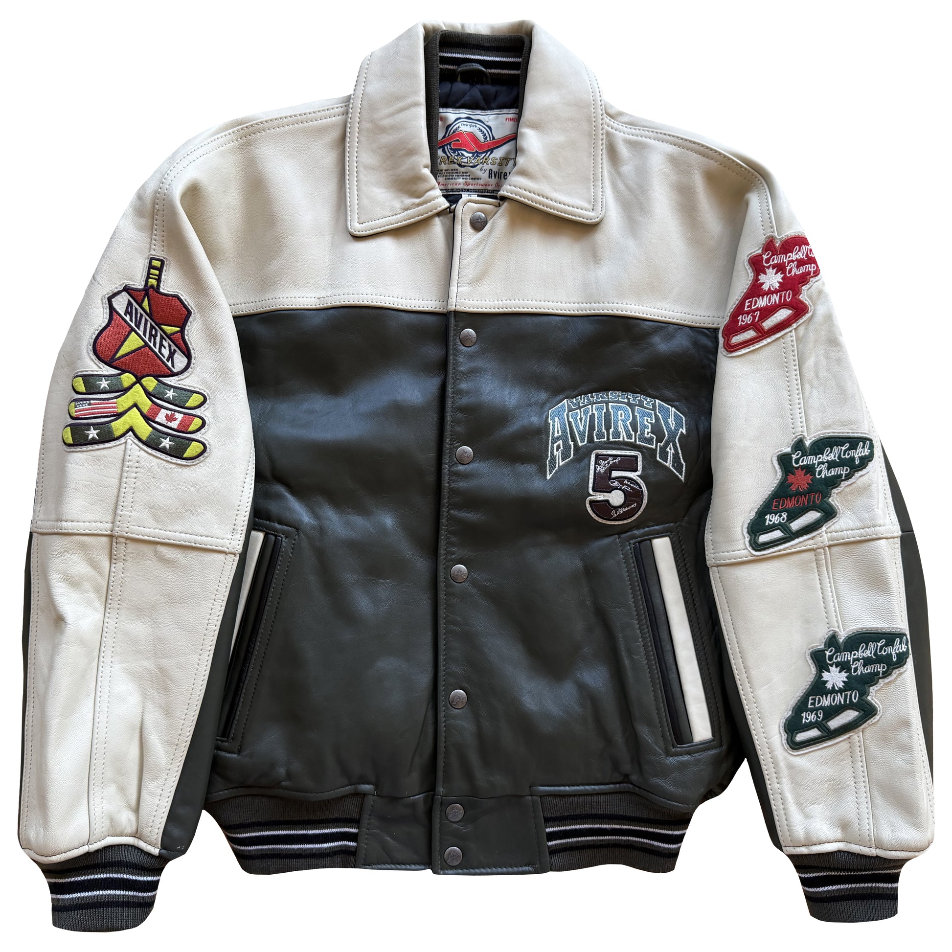 Avirex 'North West Wild Bears' Leather Varsity Jacket - S