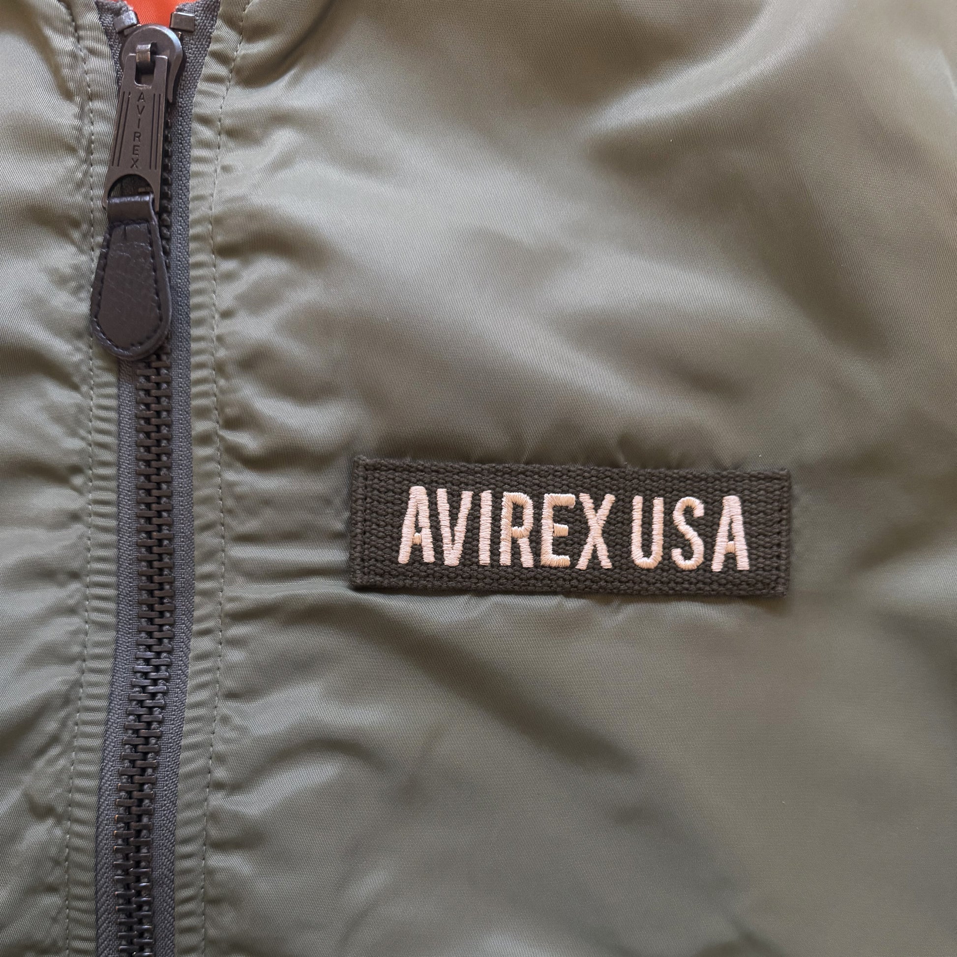 - Avirex USA patch on chest