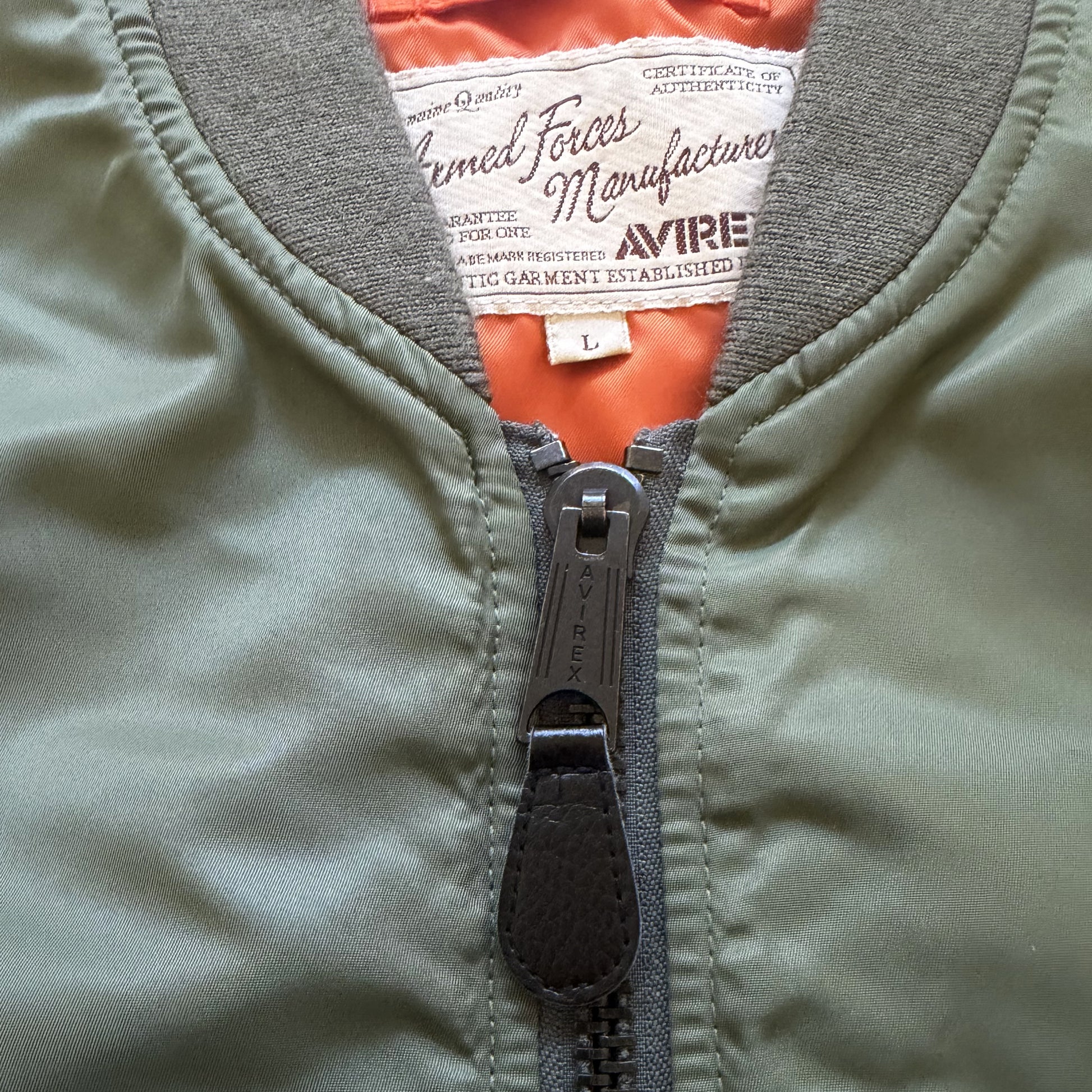 - Avirex branded zipper