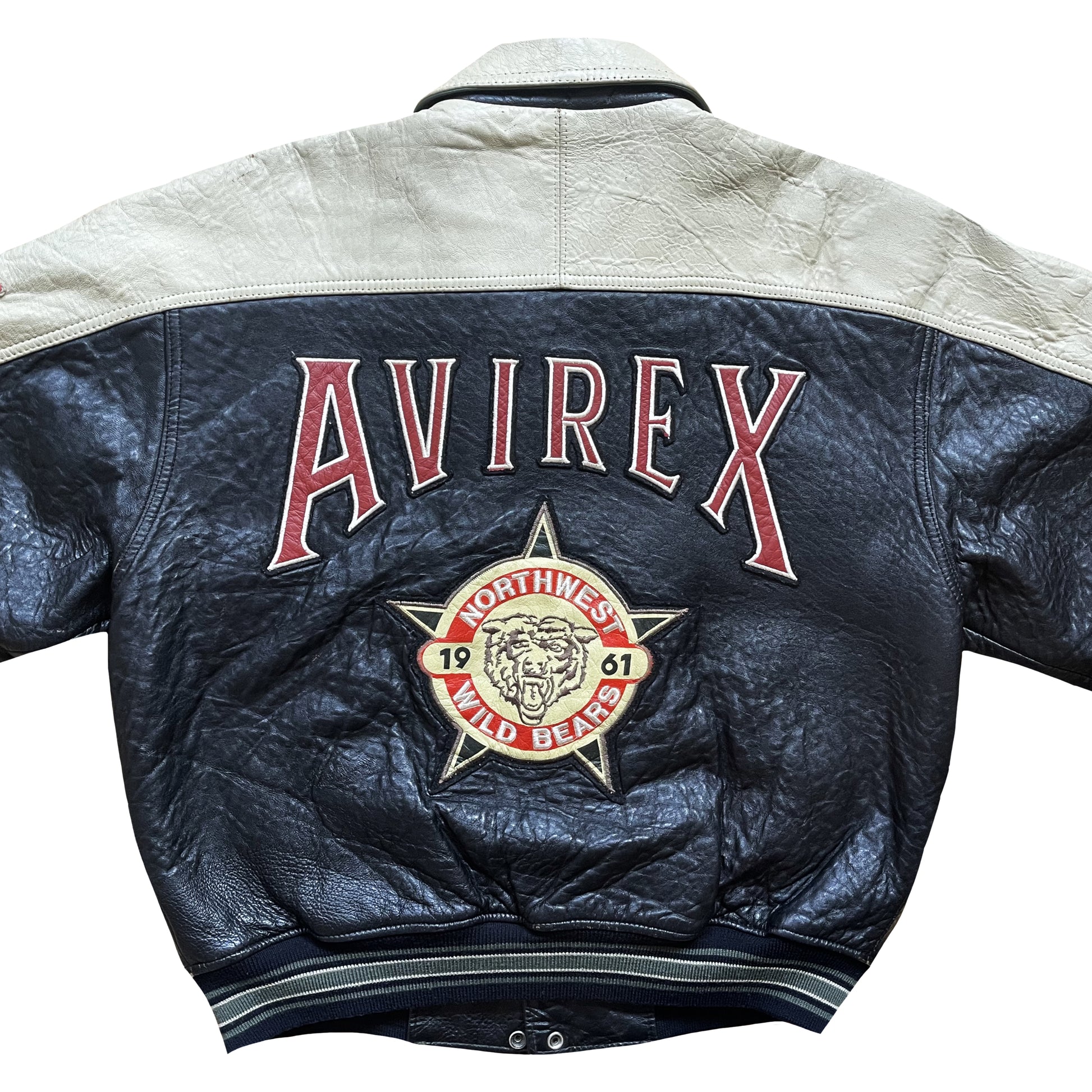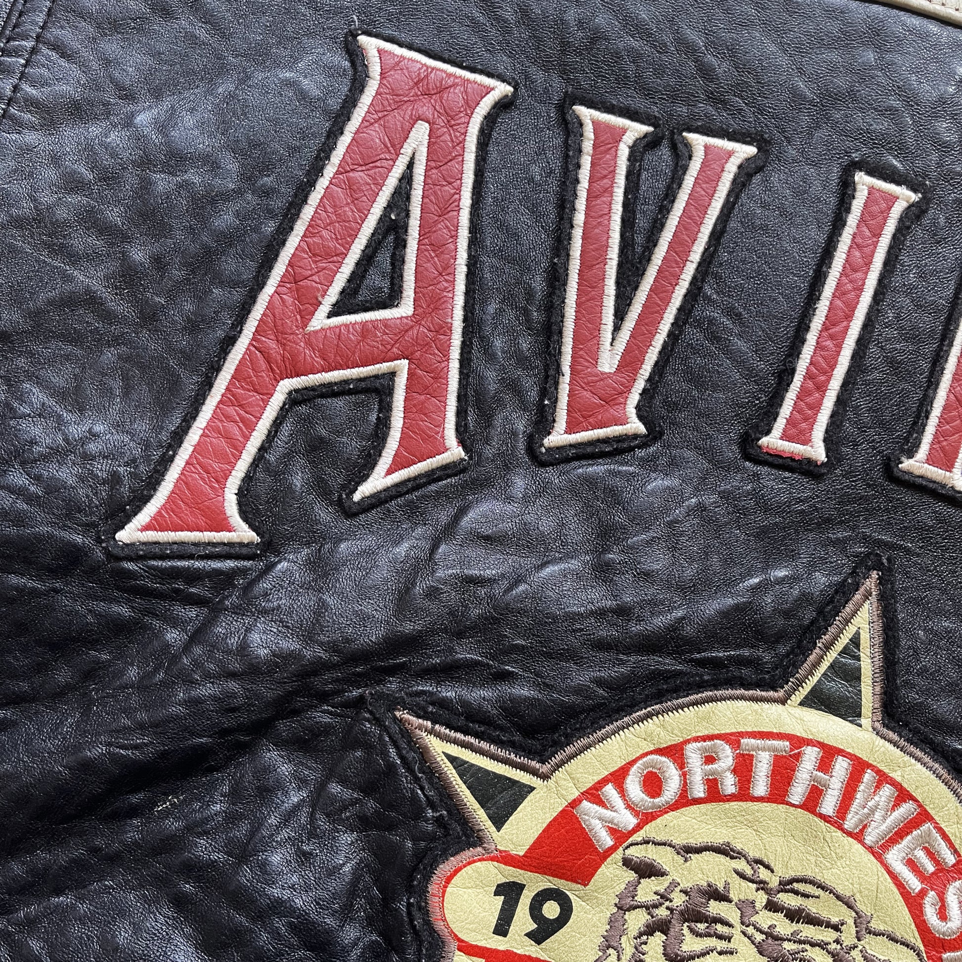 Avirex 'North West Wild Bears' Leather Varsity Jacket - M