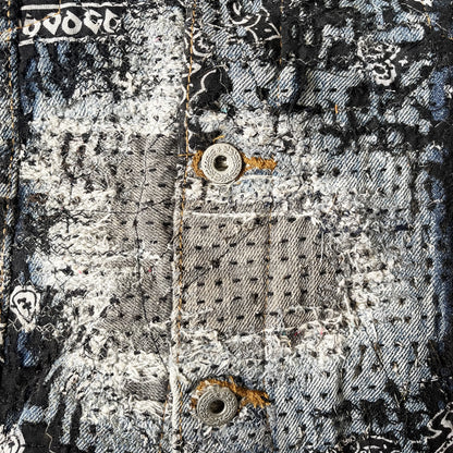 Boro Patchwork Sashiko Distressed Denim Trucker Jacket - L