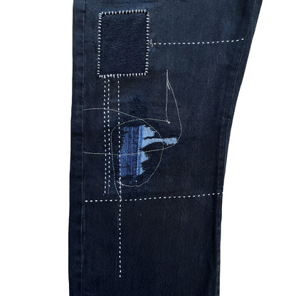 Boro Patchwork Sashiko Embroidered Jeans - W34"