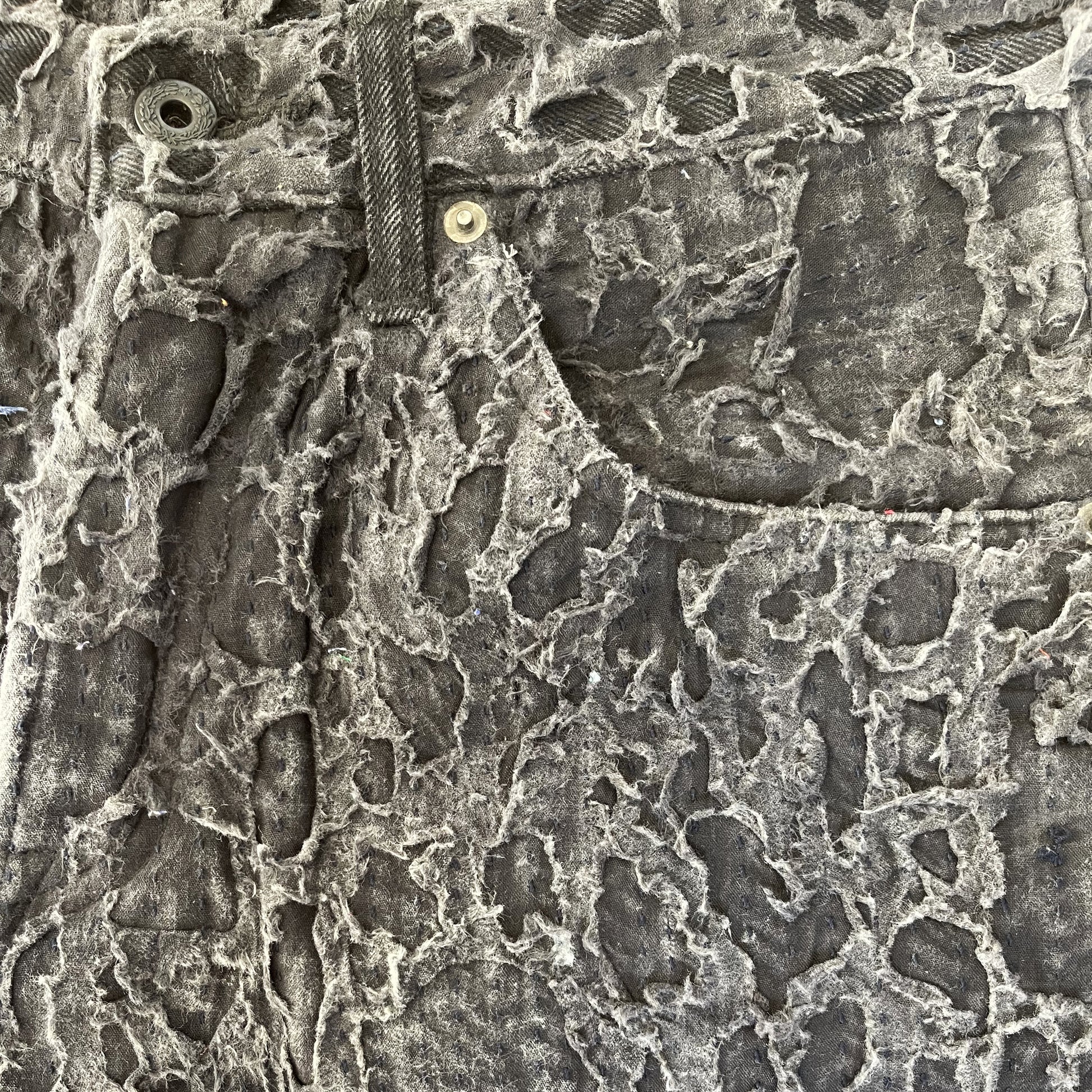 Tagged 36. Waist 34”. Rise 12”. Length 30”.