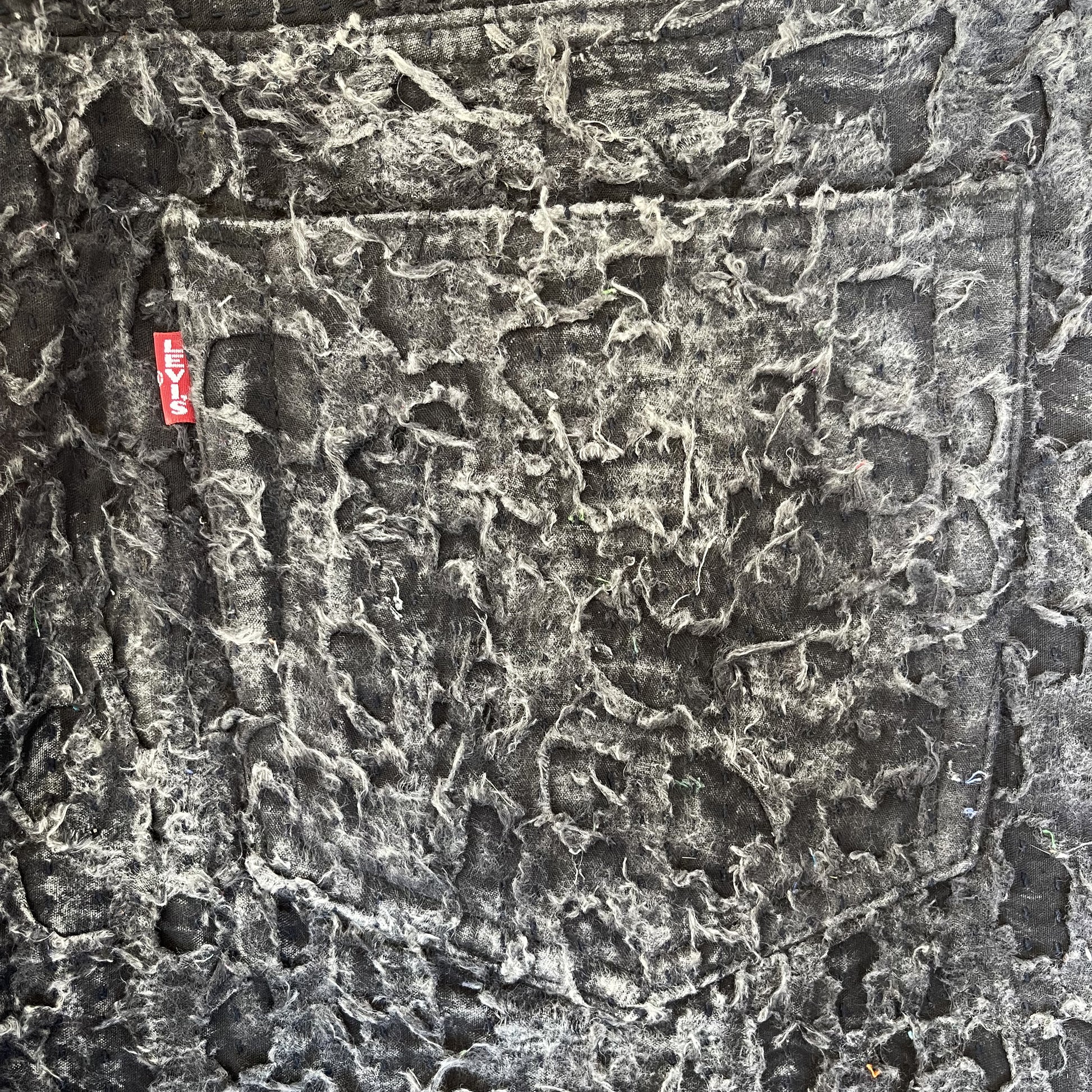 - The Levi's leather tag shows one size bigger as the jeans are completely deconstructed and re-sewn during the production process