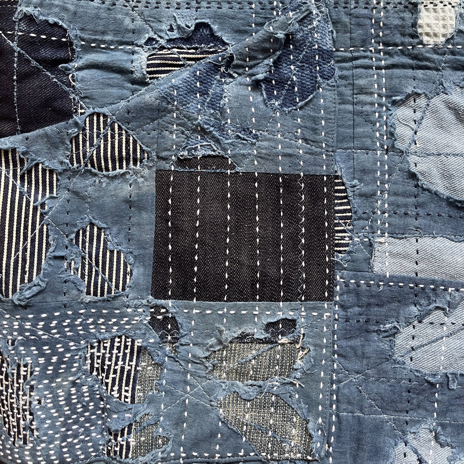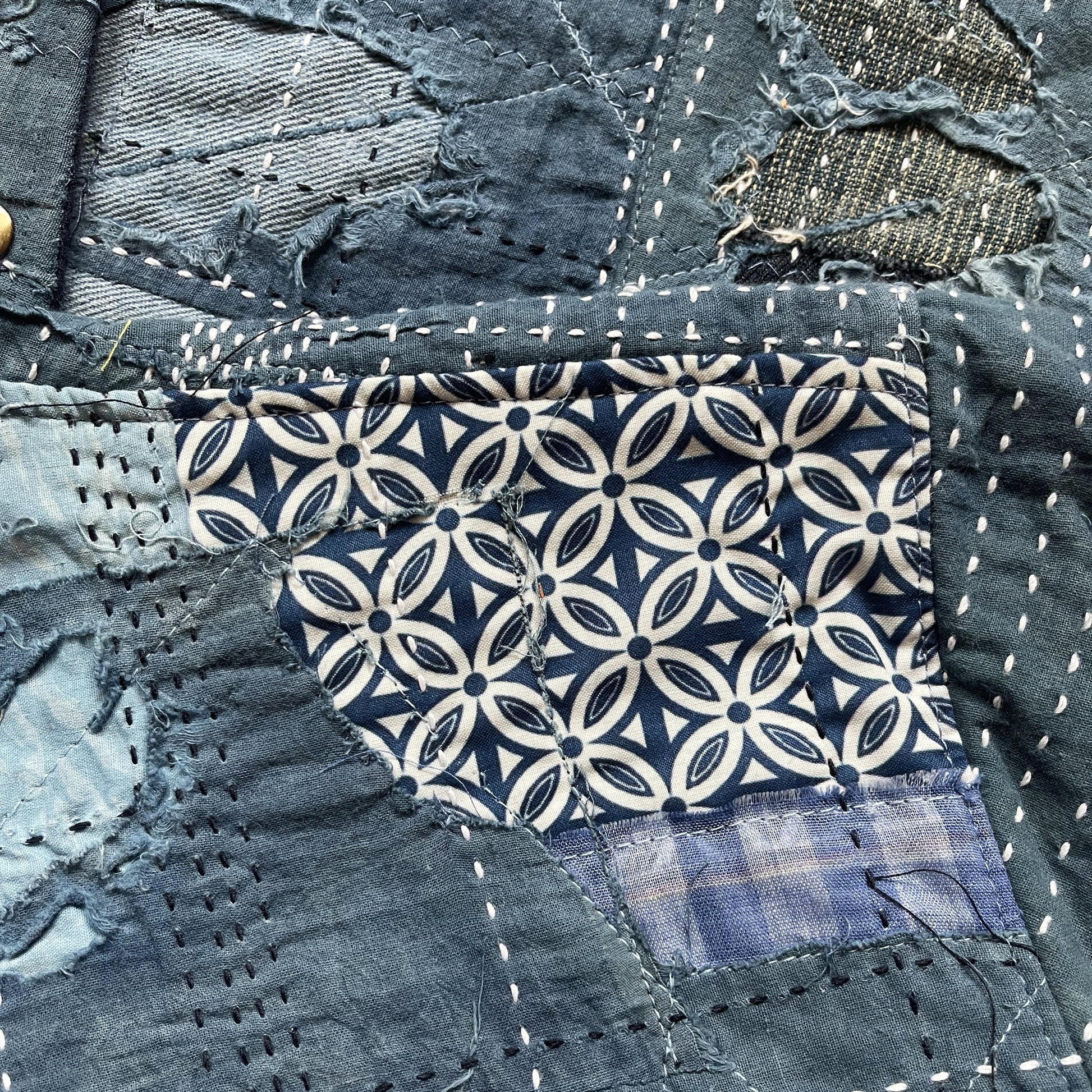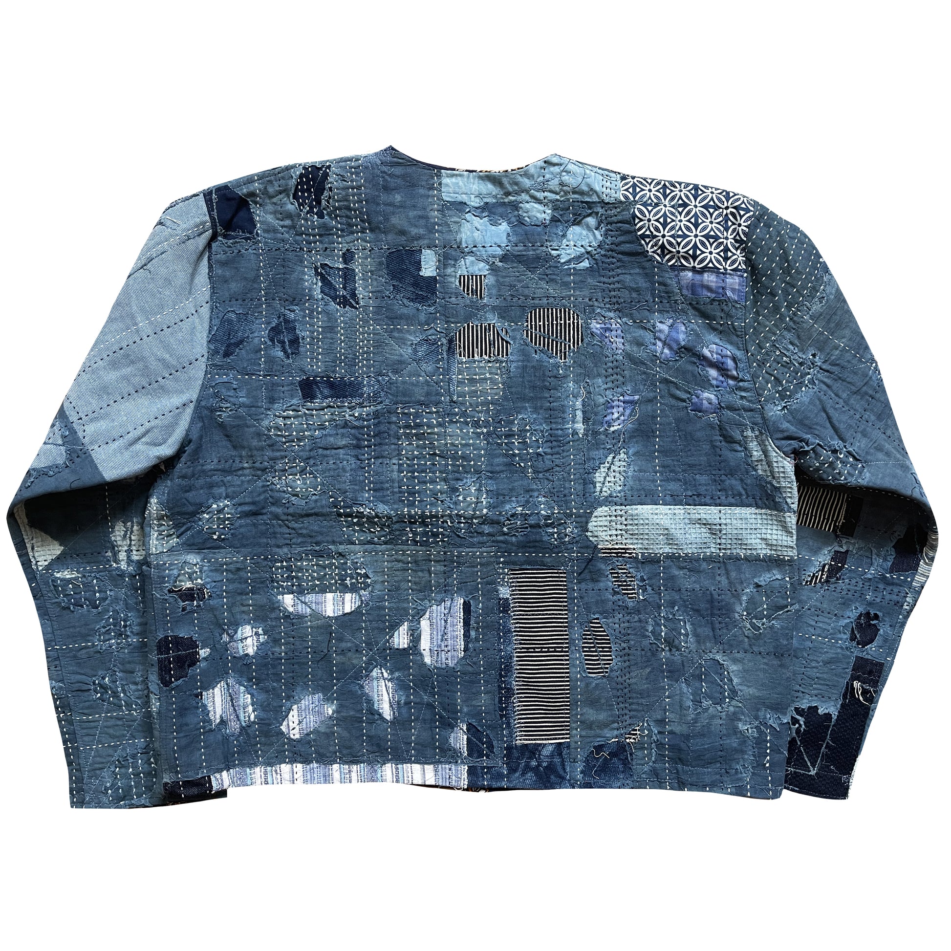 Japanese Boro Sashiko Distressed Collarless Box Denim Jacket