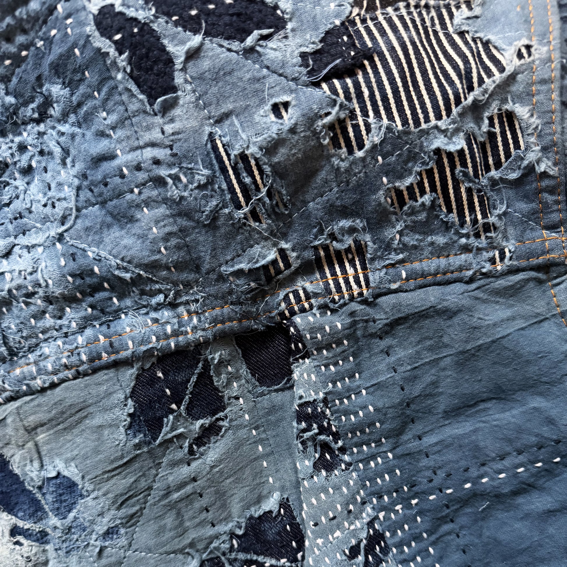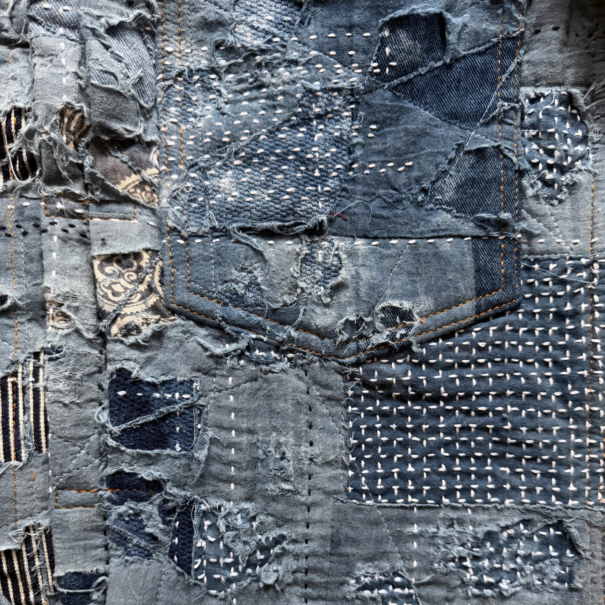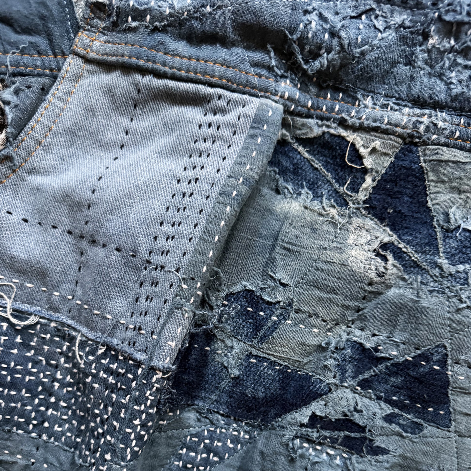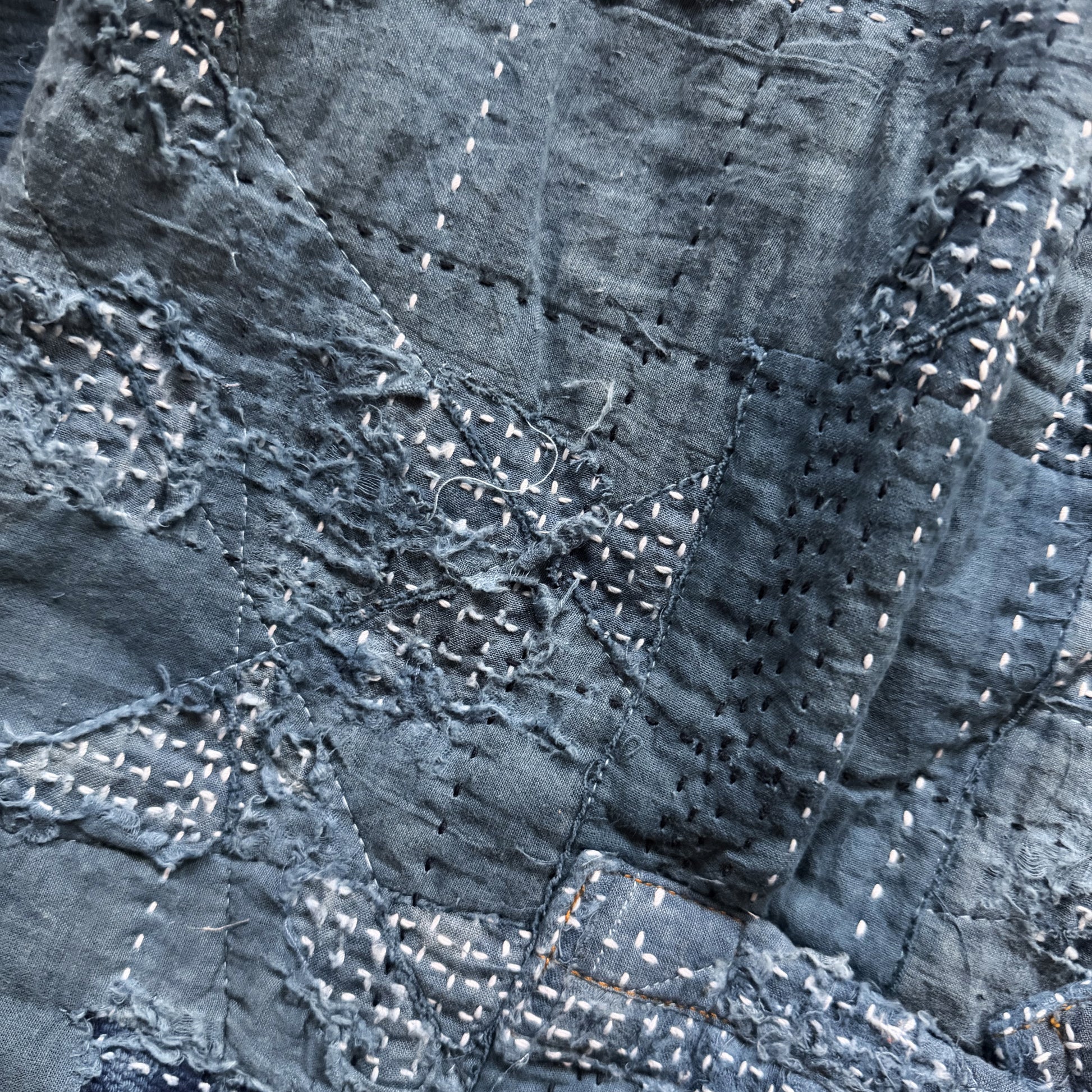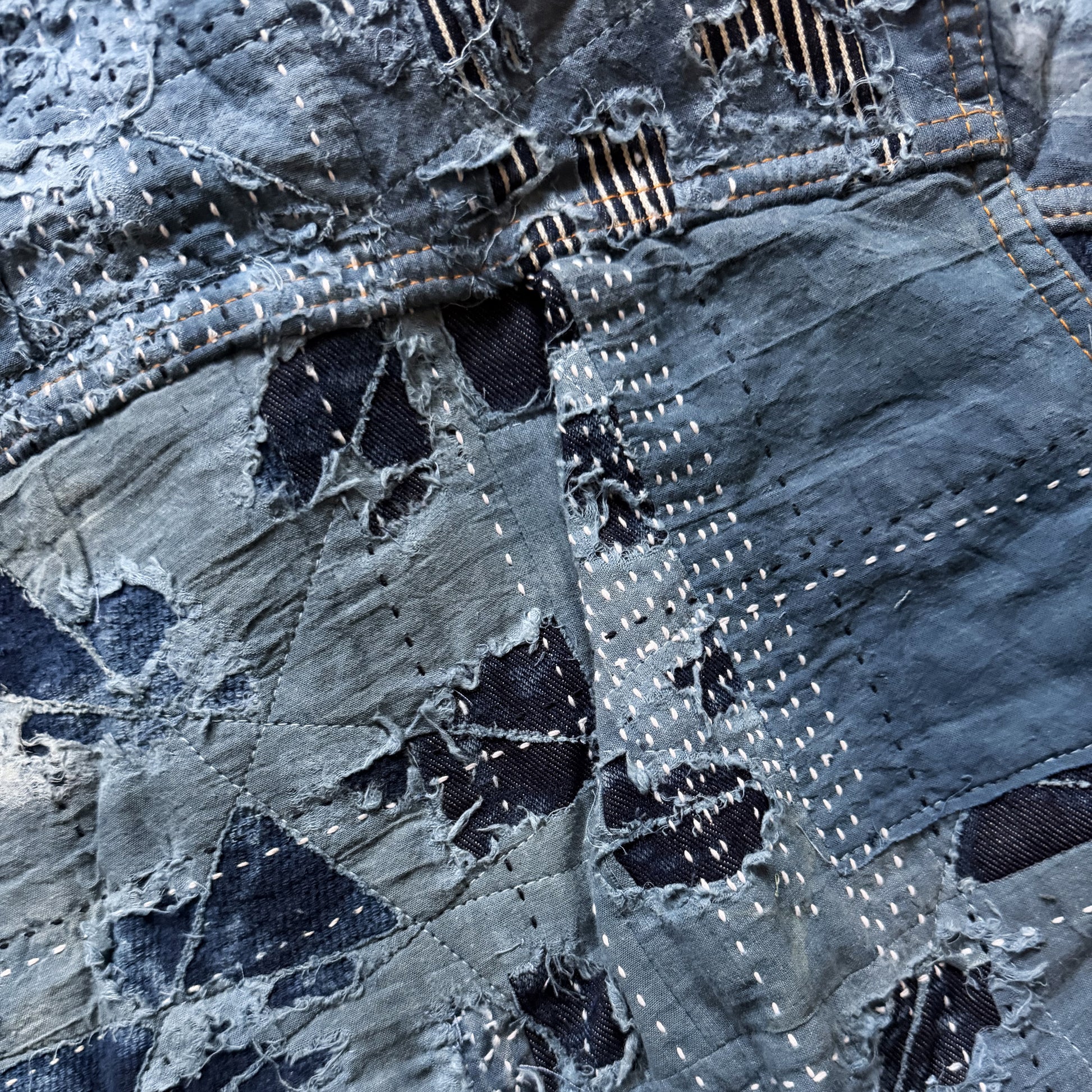 Indigo Boro Sashiko Distressed Denim Trucker Jacket - L