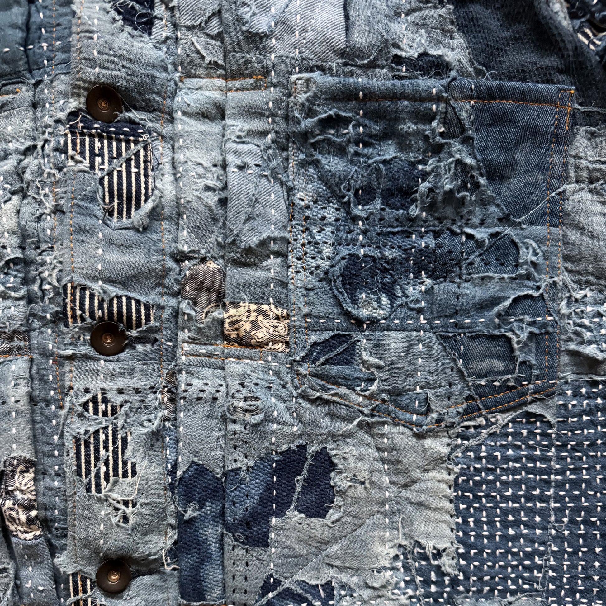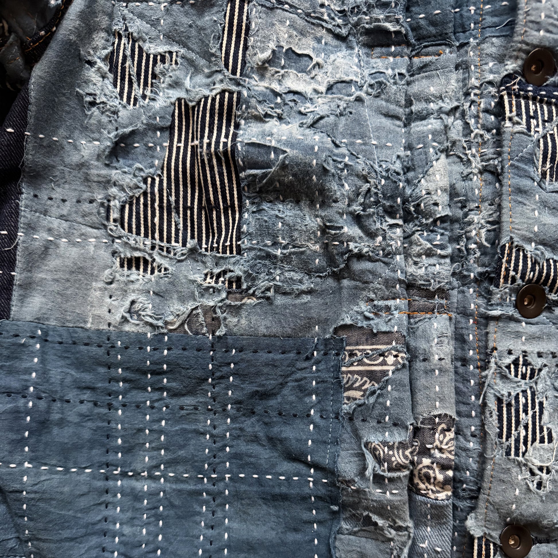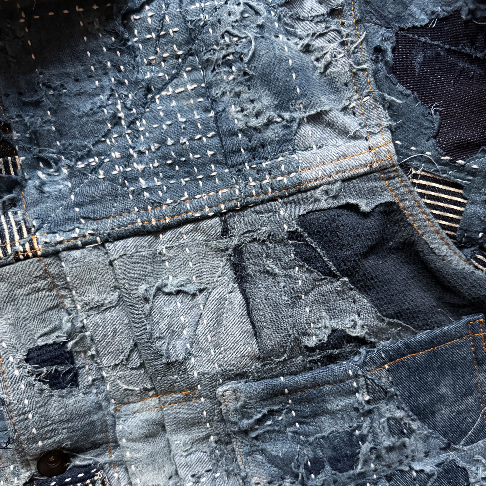 Indigo Boro Sashiko Distressed Denim Trucker Jacket - XL