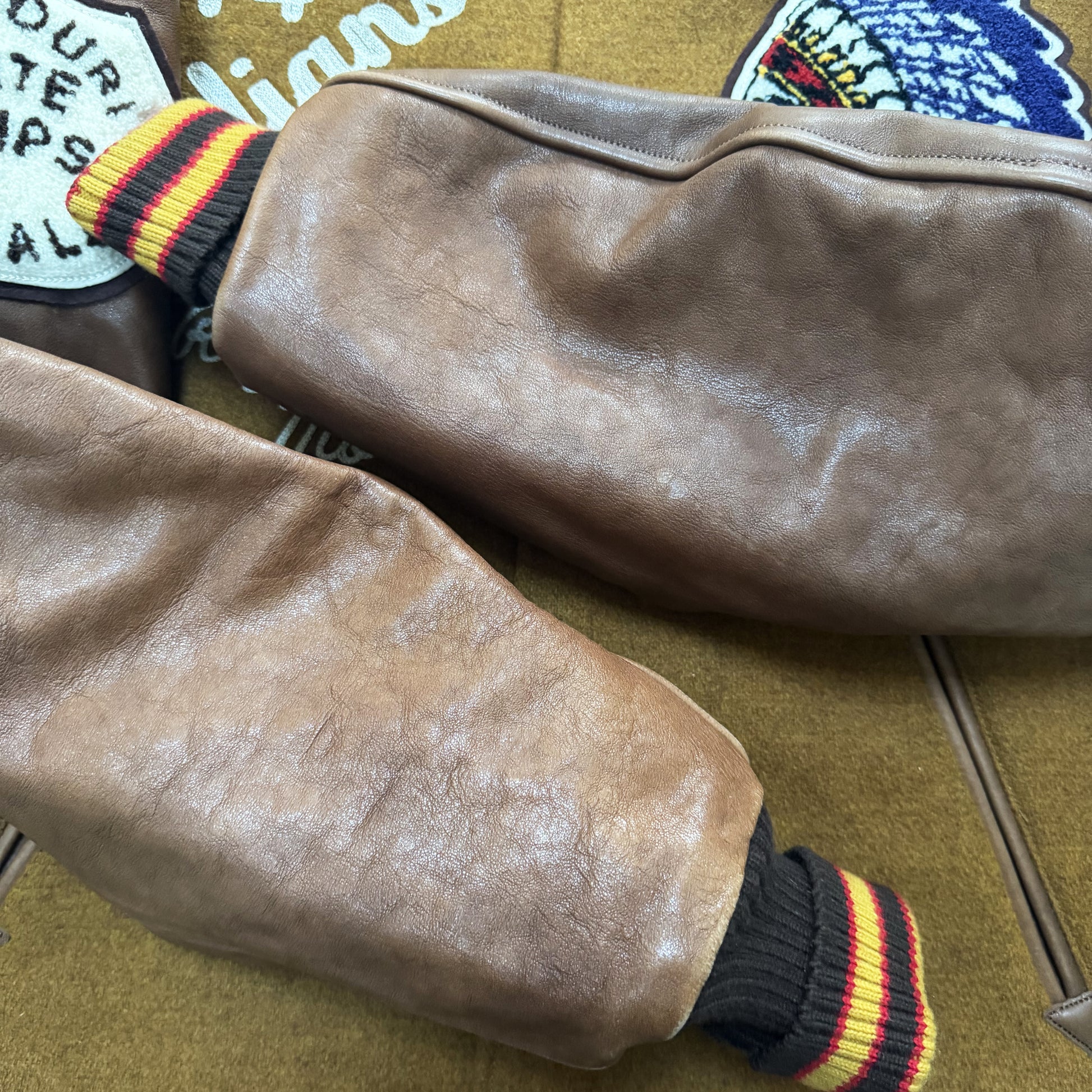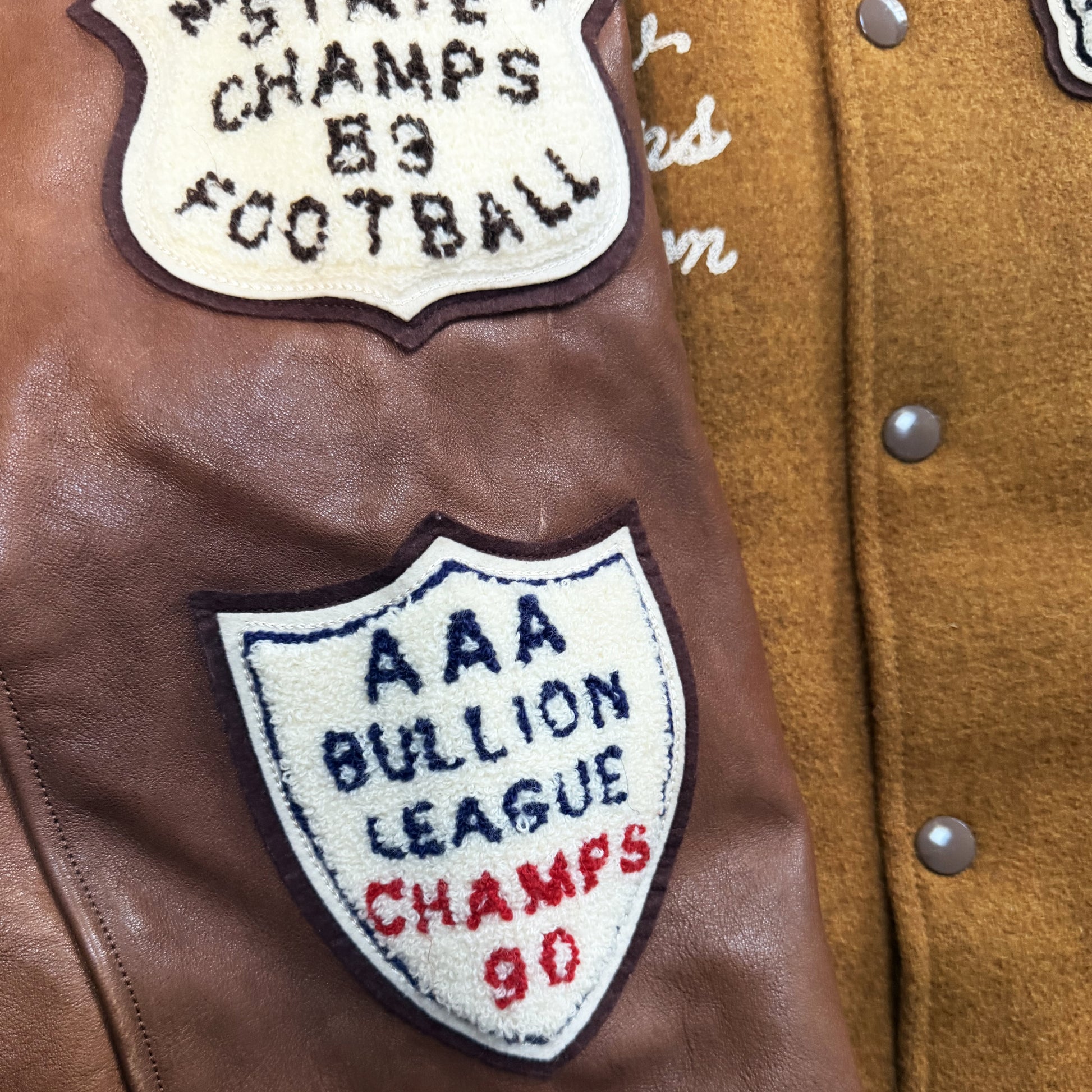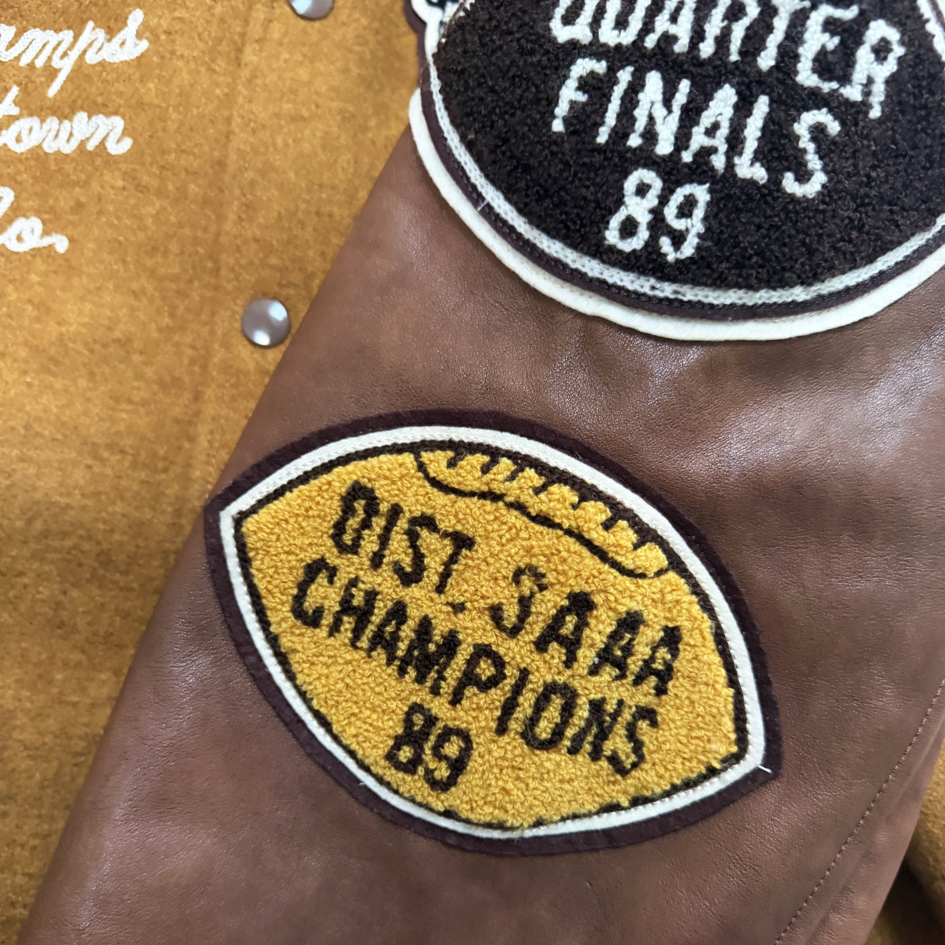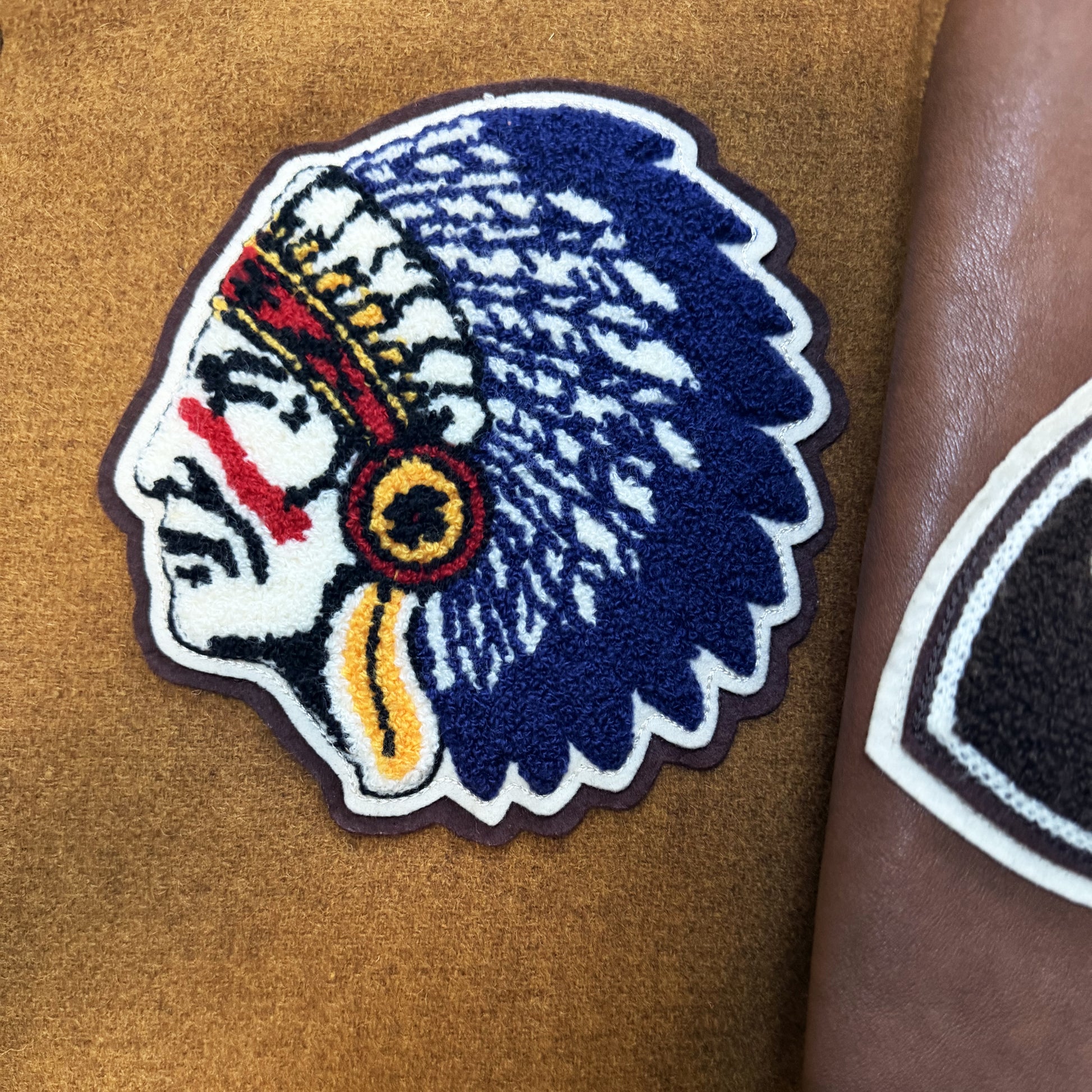 - Chenille patches and detailed embroidery