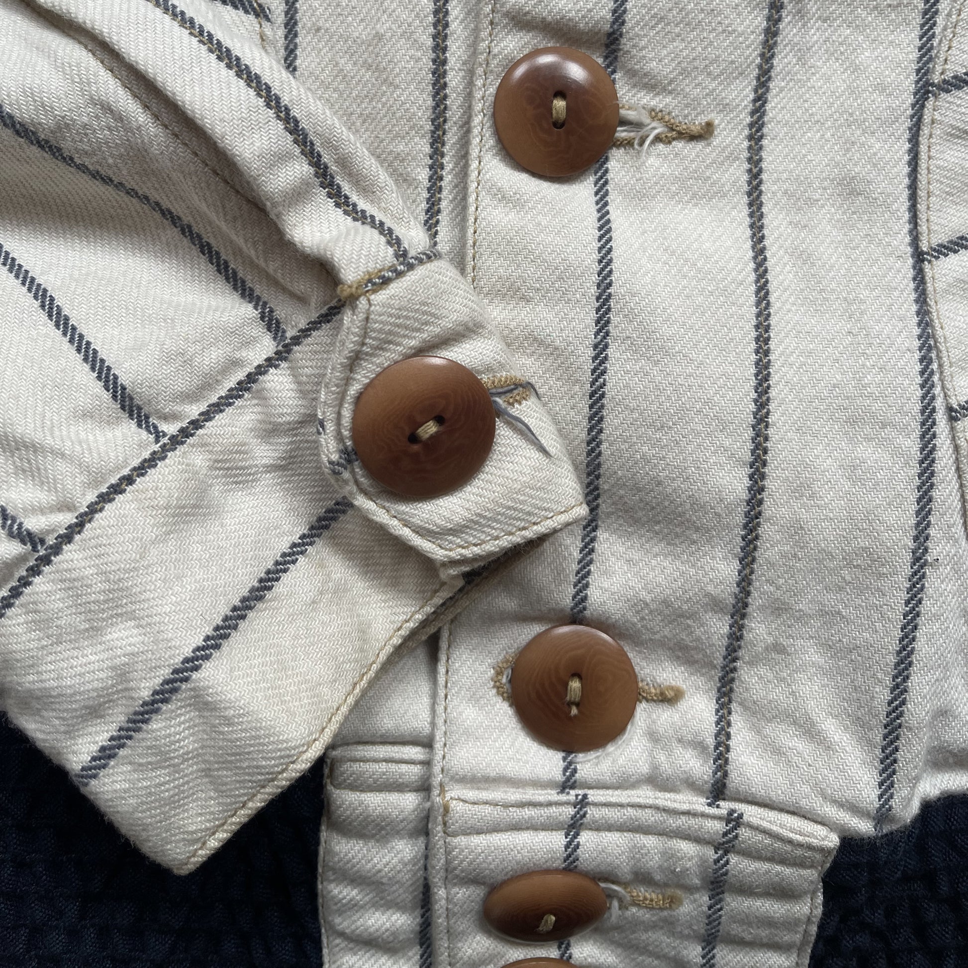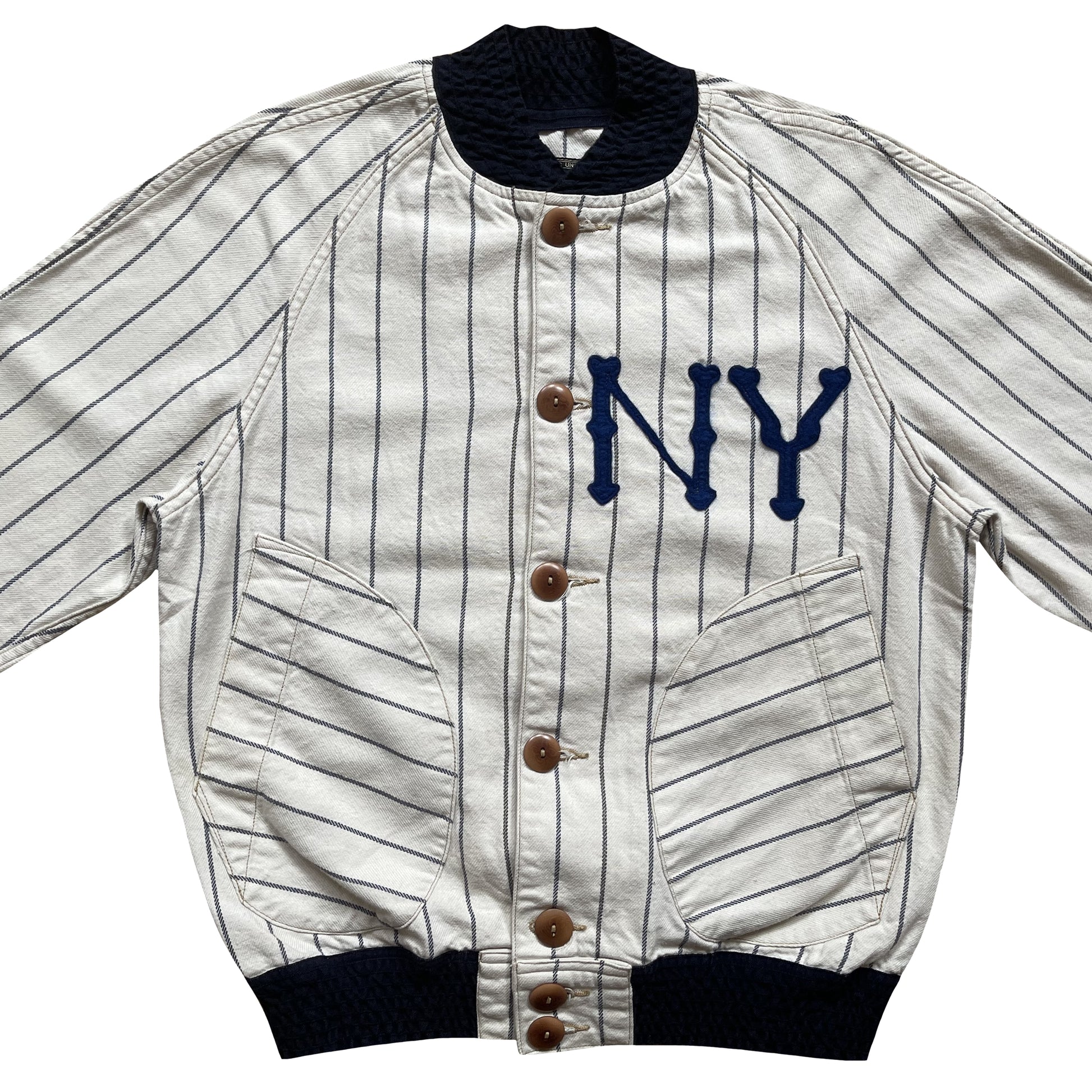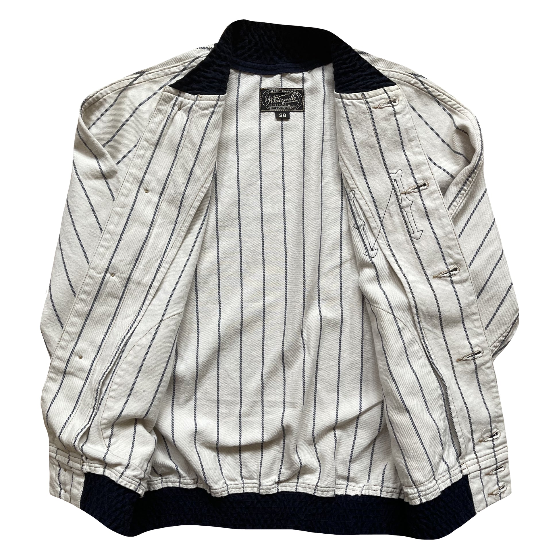 - Cotton pin stripe baseball jacket